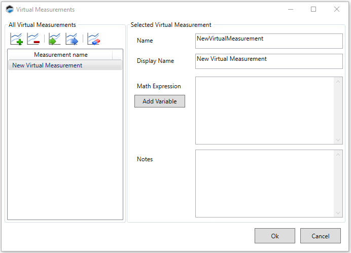 To open this window, select Log > Virtual Measurements.